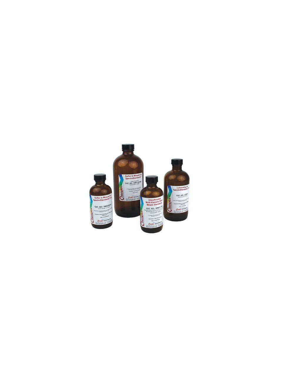 The standards are sulfur free, unless otherwise noted, and intended for x-ray fluorescence (XRF), plasma emission (ICP or DCP), rotating disk (rotrode) or atomic absorption (AA) analyses. A Certificate of Analysis accompanies each item; supplied in glass amber bottles containing 100 cc of standard.